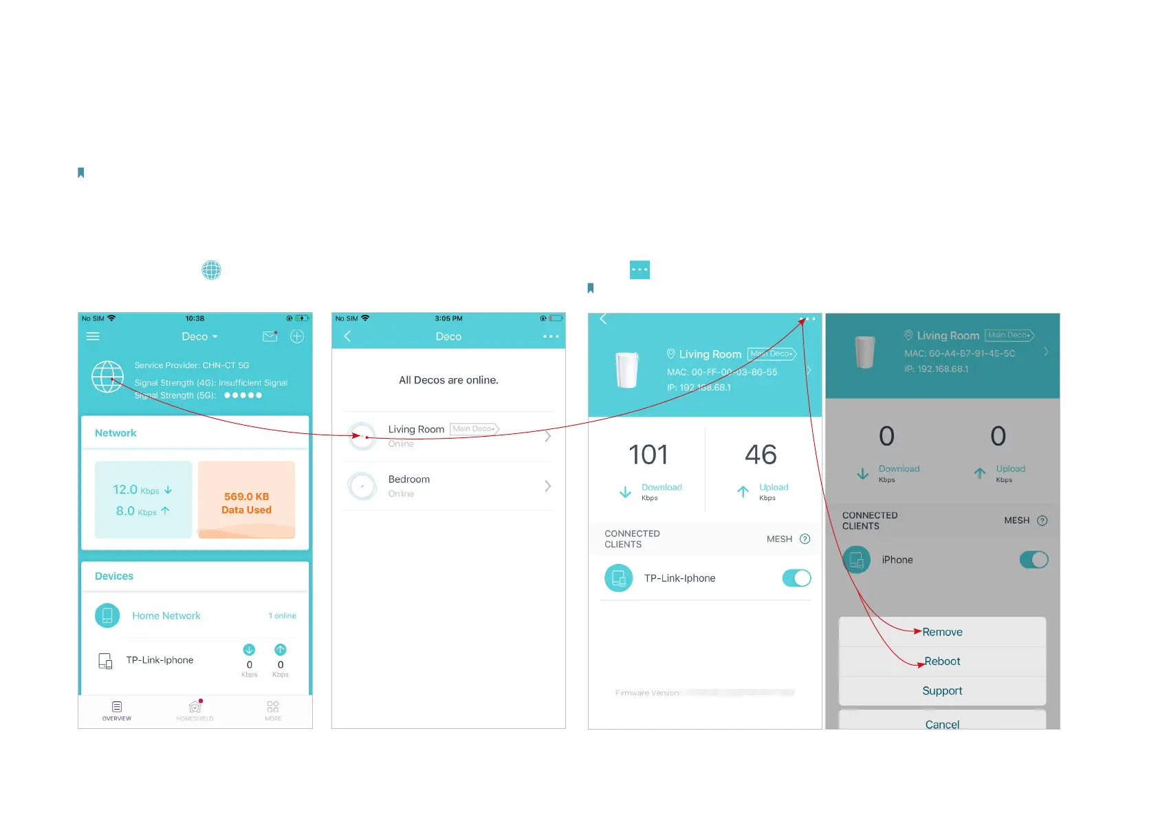 3. Tap to remove or reboot the Deco.
