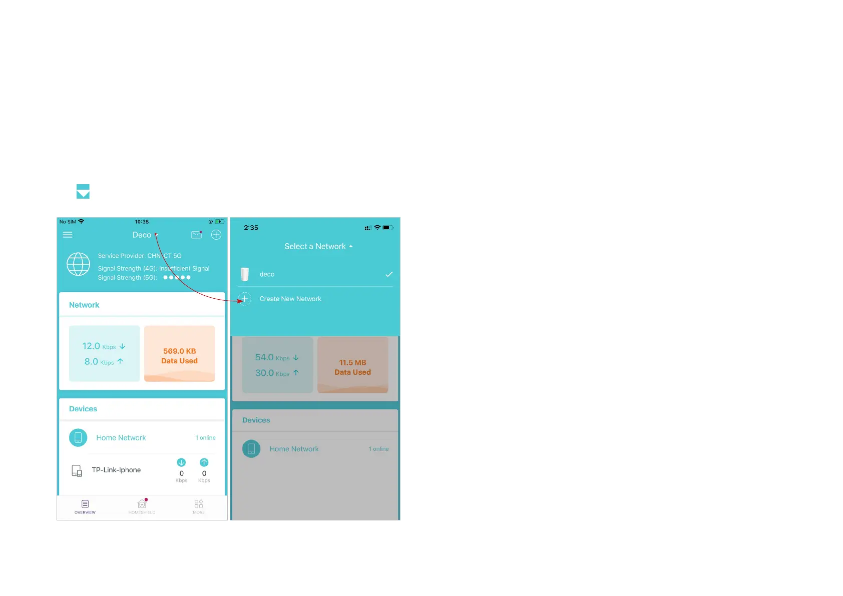 In the Deco app, you can create different Deco networks with your TP-Link ID and manage them conveniently from the Deco app with one account. You