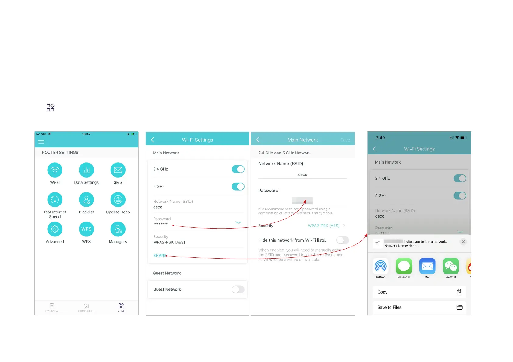 You can change the network name and password of your main network at any time and share the network easily with family and friends.