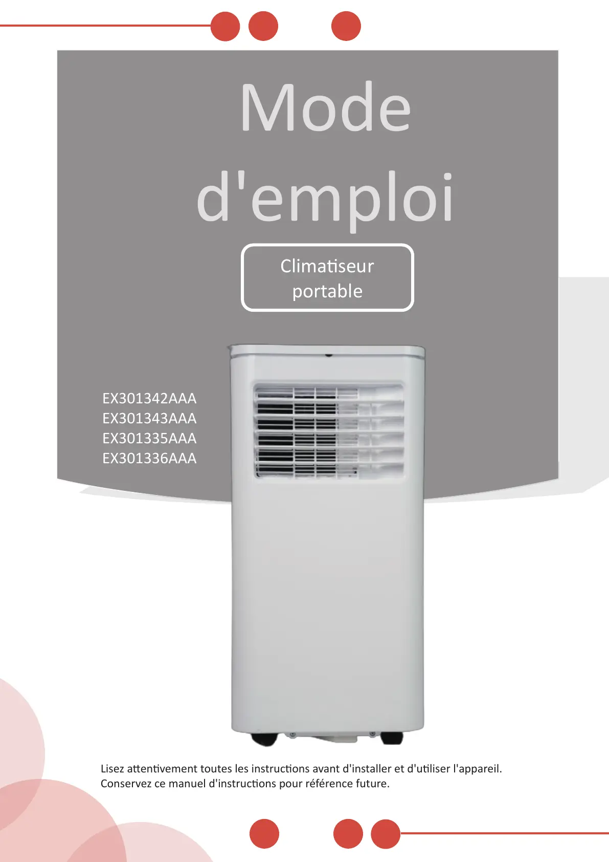 Conservez ce manuel d'instrucons pour référence future.