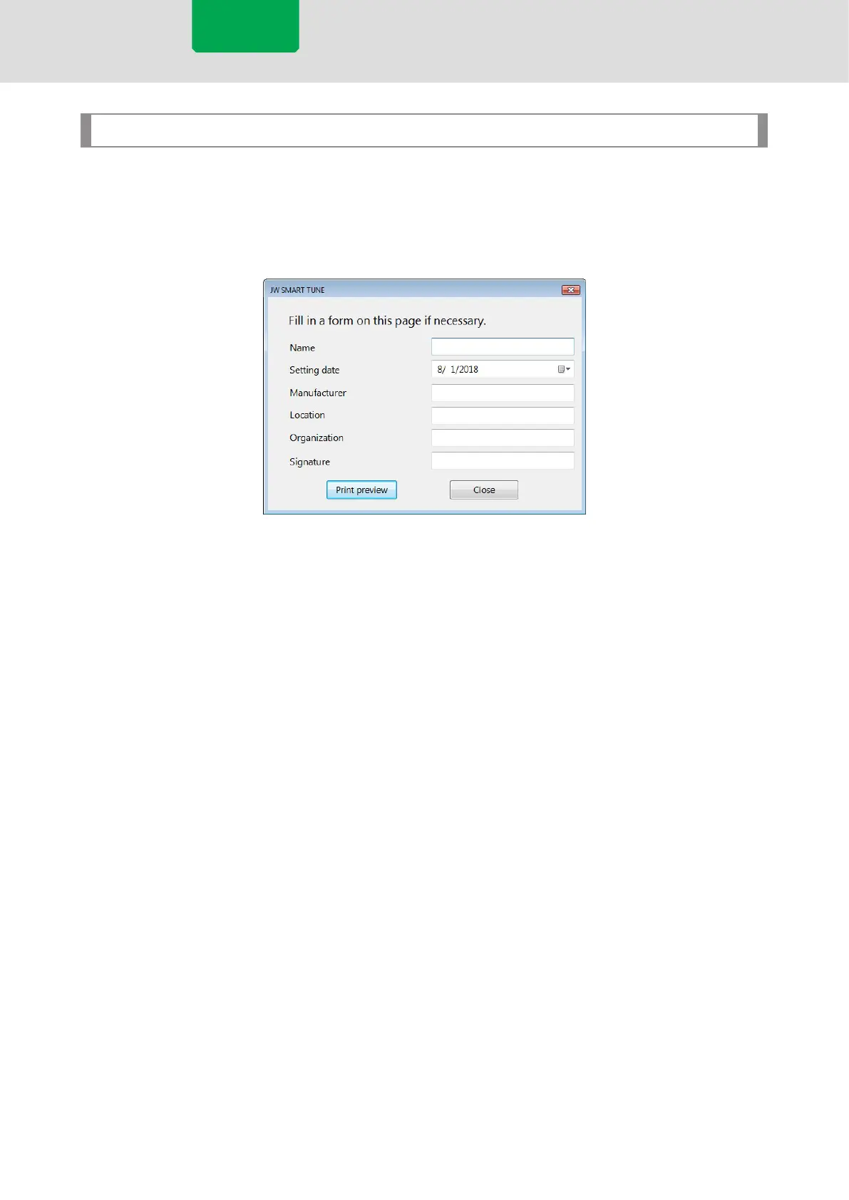 When printing the settings on the Driving Parameters window, a window with entry elds for printing will
