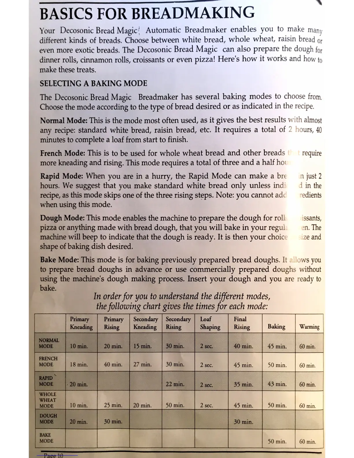 Decosonic BREAD MAGIC 571 - Basics for Breadmaking; Selecting a Baking Mode; French Mode; Rapid Mode