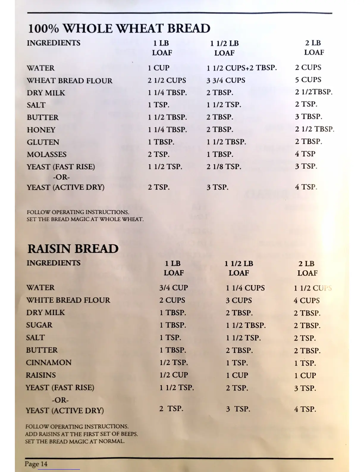 Decosonic BREAD MAGIC 571 - 100% Whole Wheat Bread; Raisin Bread