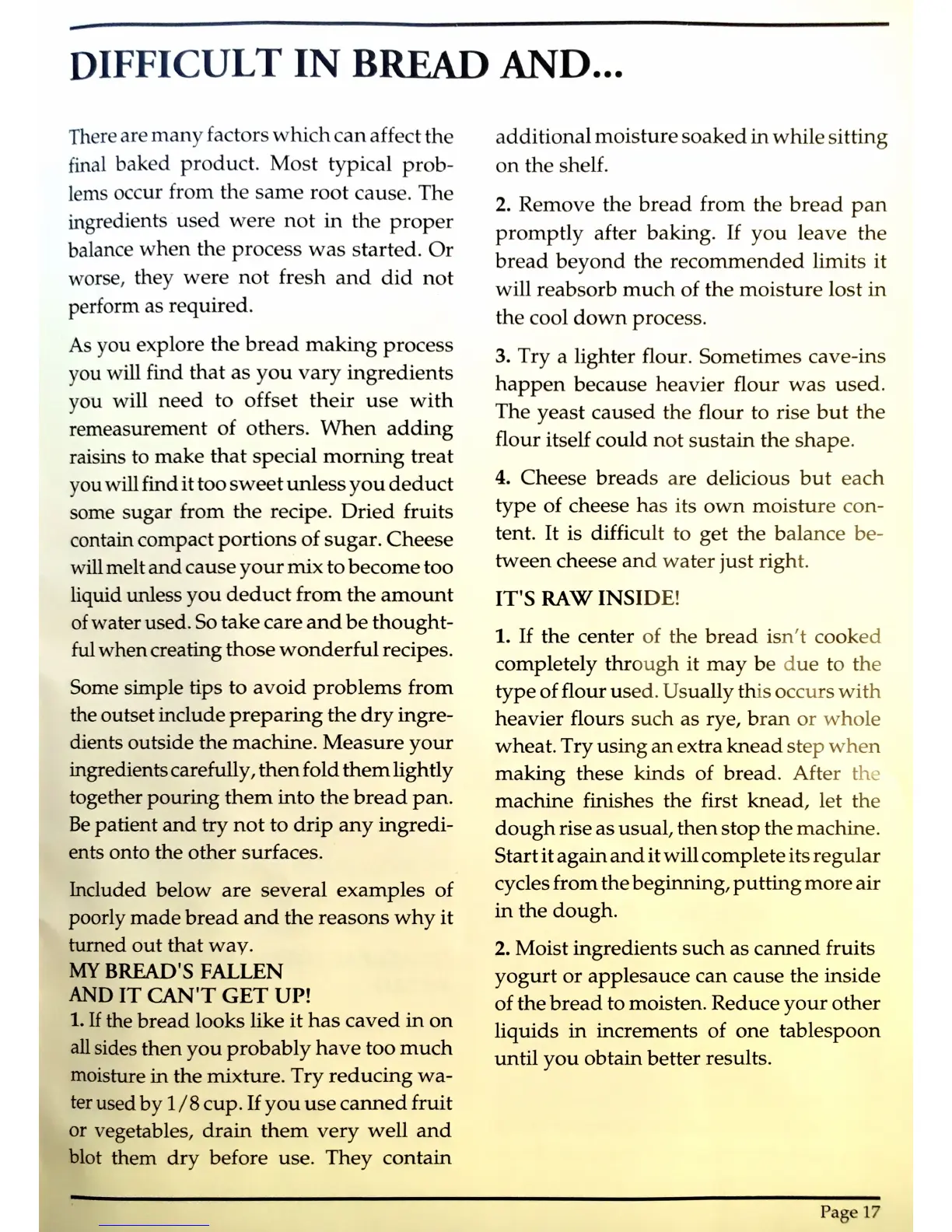 Decosonic BREAD MAGIC 571 - Troubleshooting Common Bread Issues; Bread Fallen or Not Rising; Bread Undercooked Inside