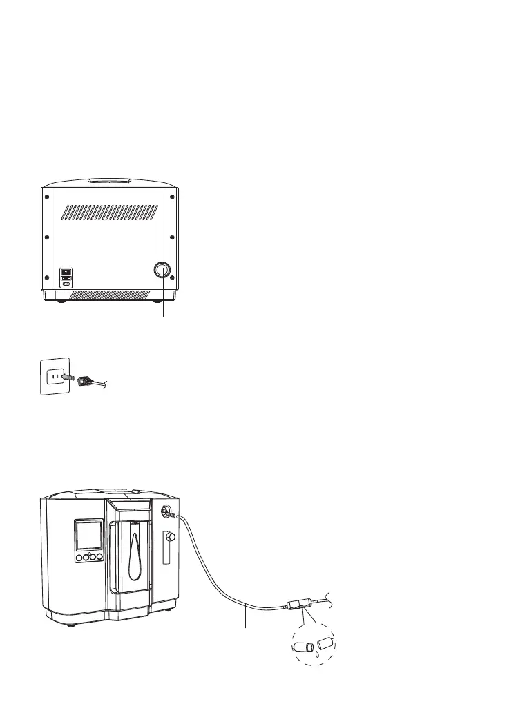 the power line into the power socket of the oxygen machine,
