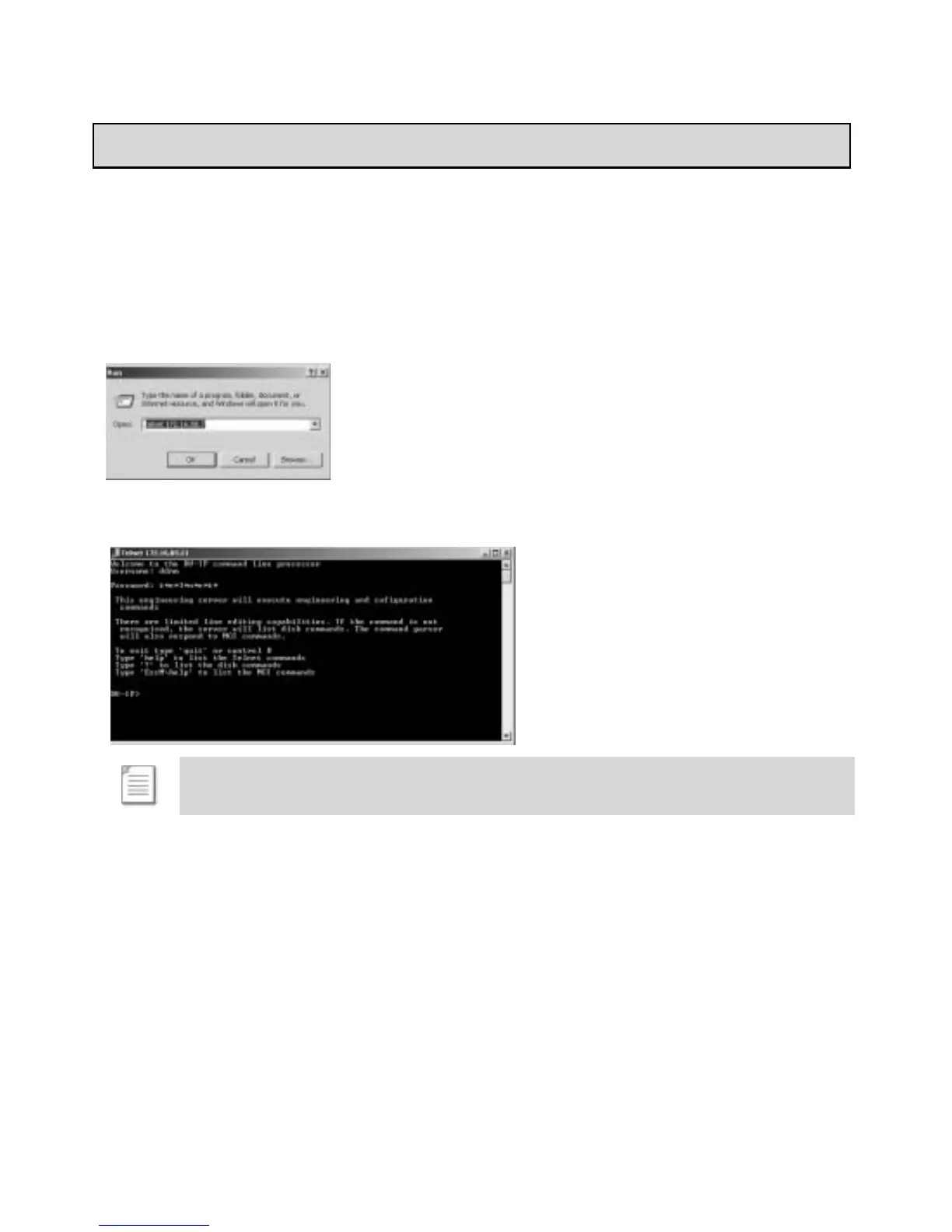 3. You will be prompted for a username and password (default dm and telnet) and press