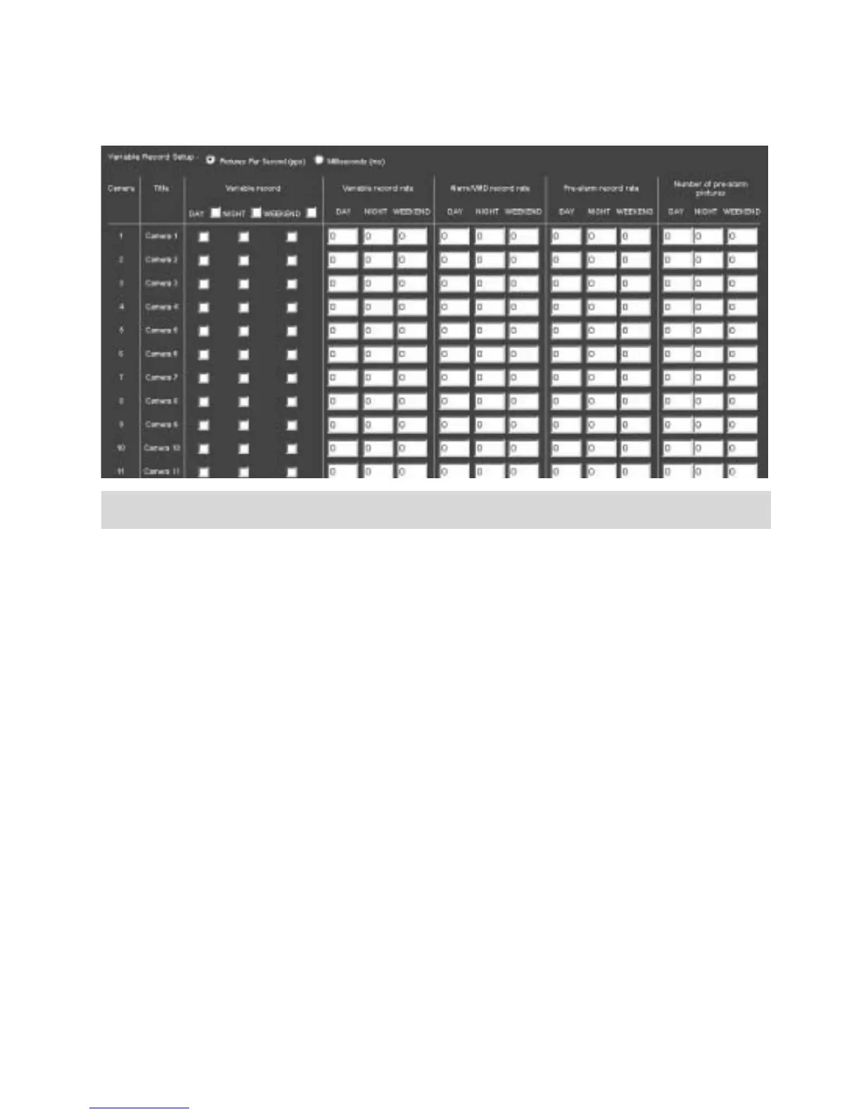 The variable record rate can be configured as pps or ms.