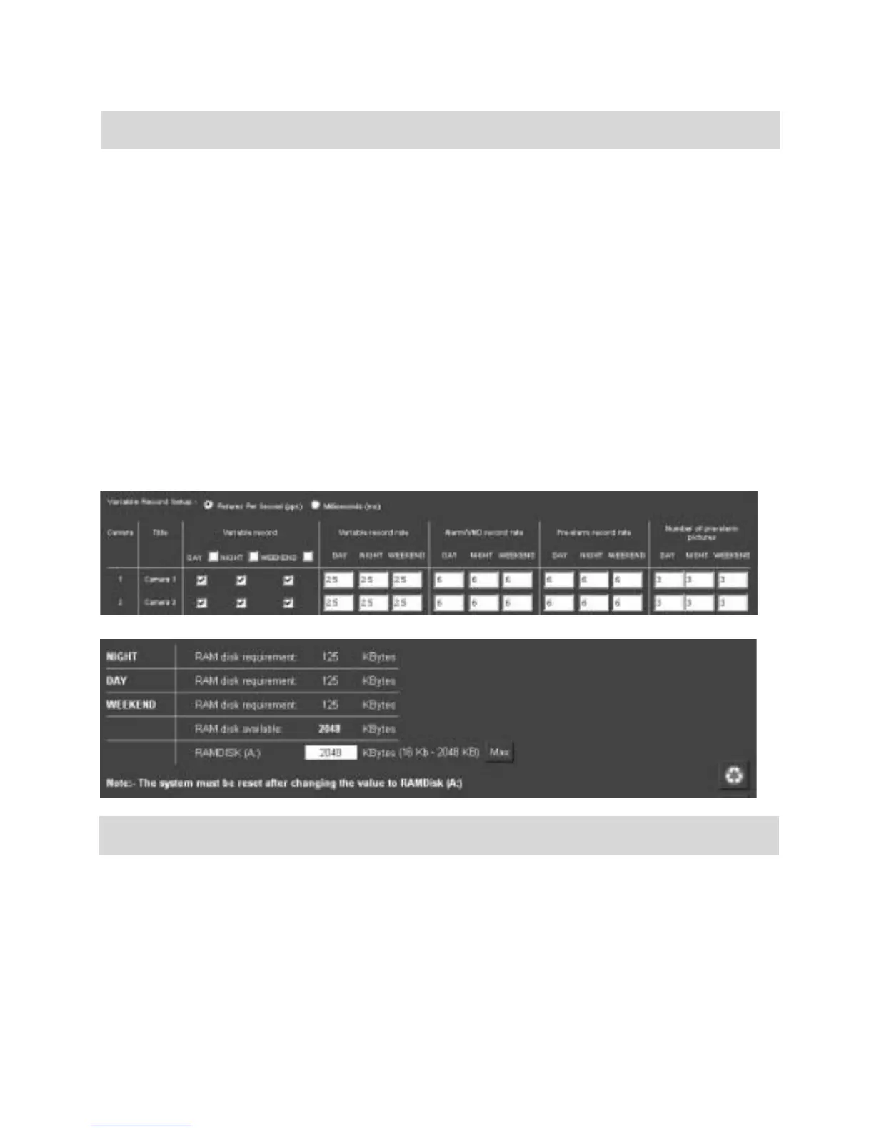 have sufficient RAMDisk to accommodate the number of images required on alarm; i.e. variable