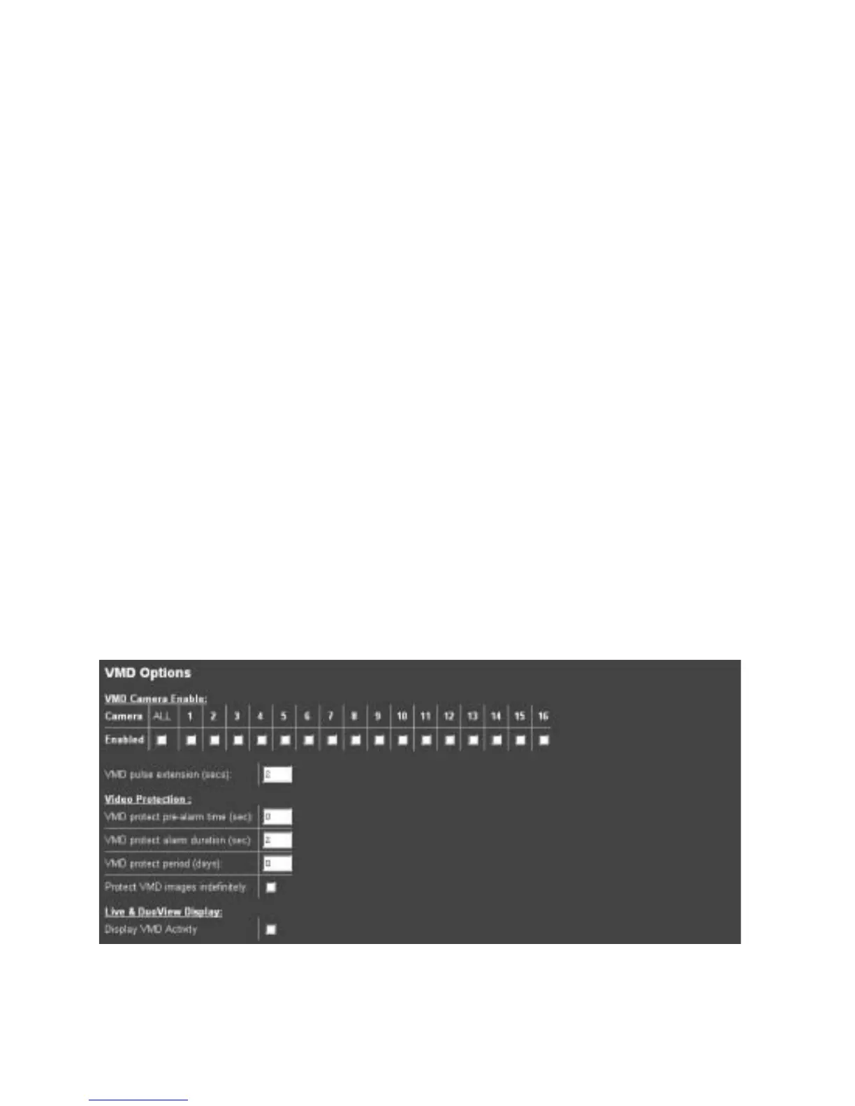 want to view VMD triggers on these page enable the function by placing a tick in the box.