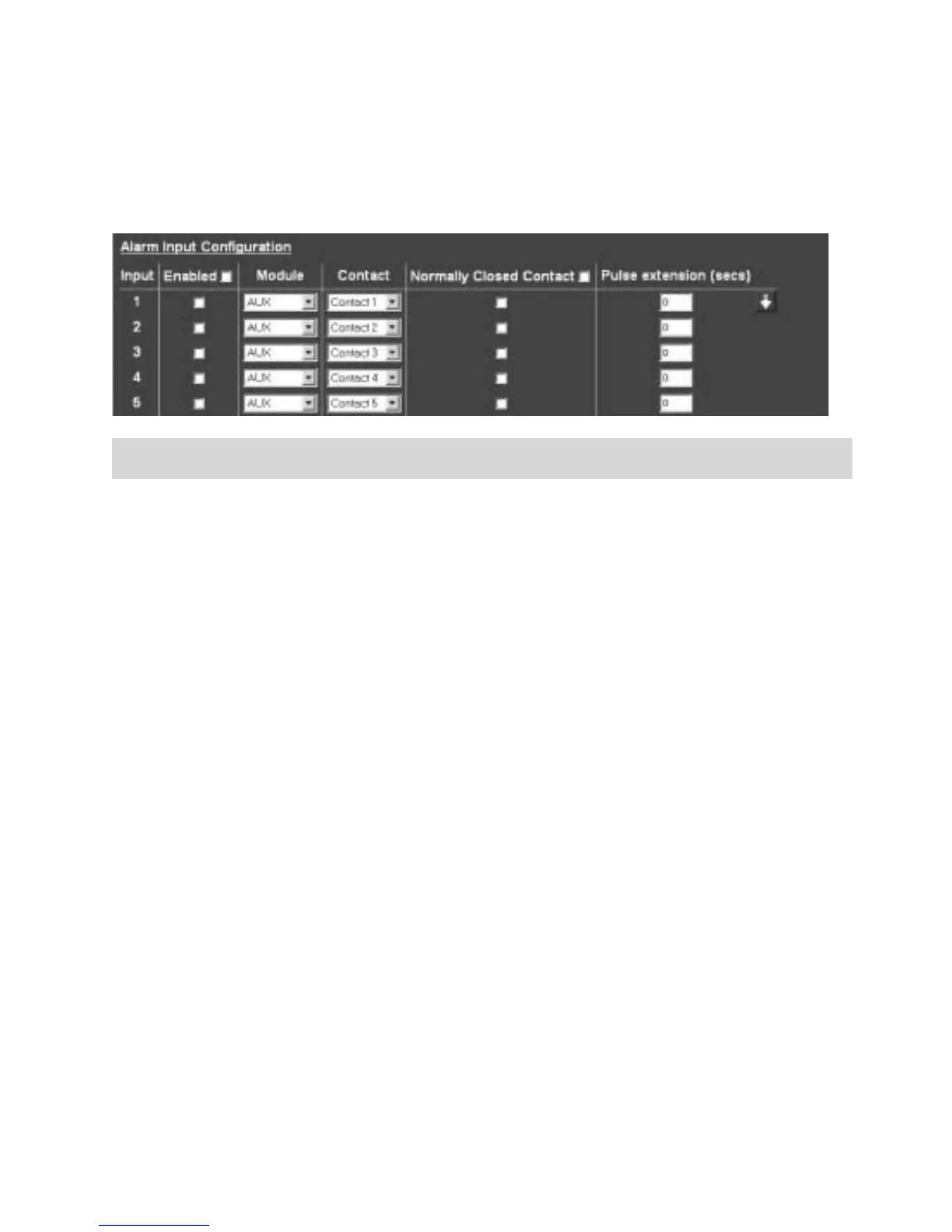 4. Set the pulse extension for the relevant alarm input (if applicable).