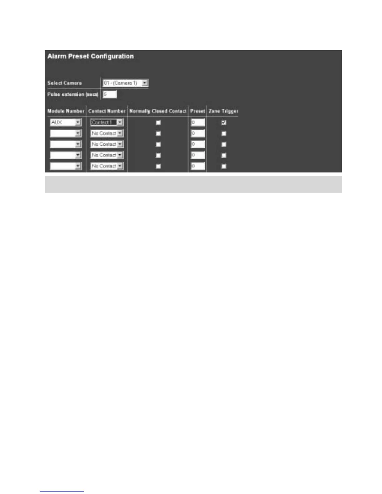Zone Trigger It is possible for a camera specific alarm to also trigger an alarm zone. If