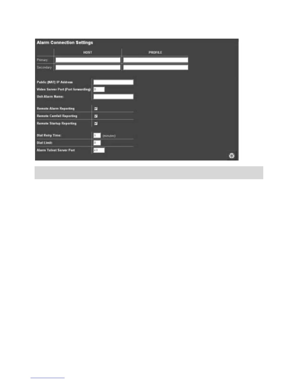 If there is only one alarm receiving IP address, you must enter the