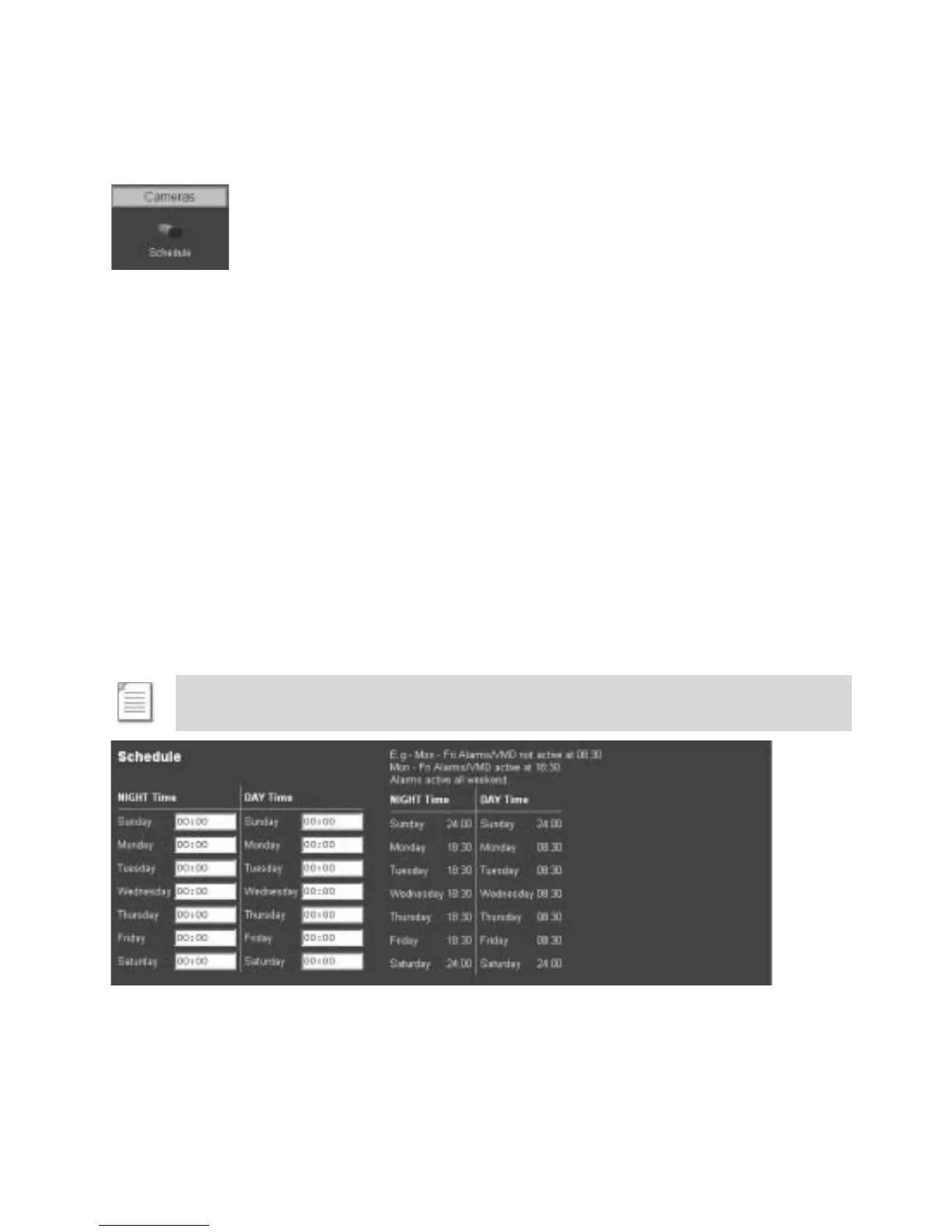 Monday to Friday – Alarms/VMD are not active from 08:30