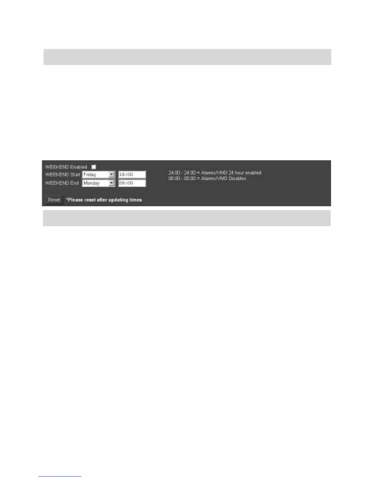 Schedule This is a seven day schedule that allows alarms and VMD to be enabled