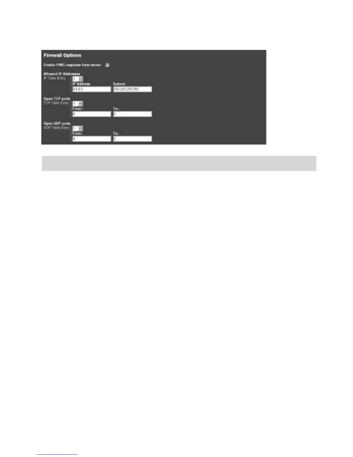 Allowed IP address These are the IP addresses and subnets that the server will allow