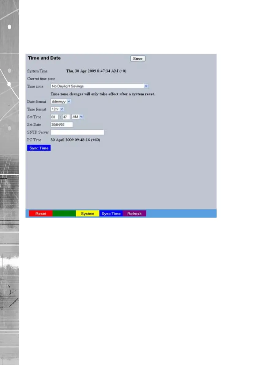 This menu allows the time and date to be set on the unit. Required timezone information can also be