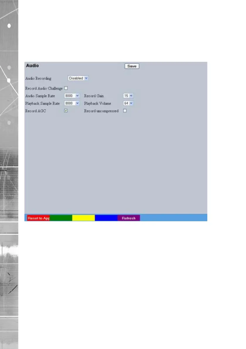 Audio Recording Select ‘Enable’ to activate Audio recording.