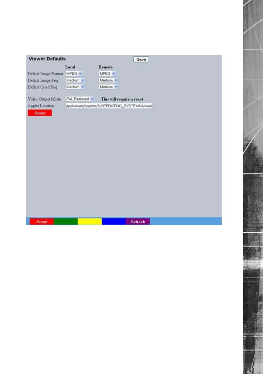 Default settings can be congured for accessing the Viewer function via a local monitor and also