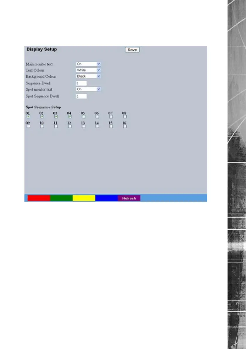 Sequence Dwell (secs) The sequence dwell time can be set from 1 to 99 seconds. The