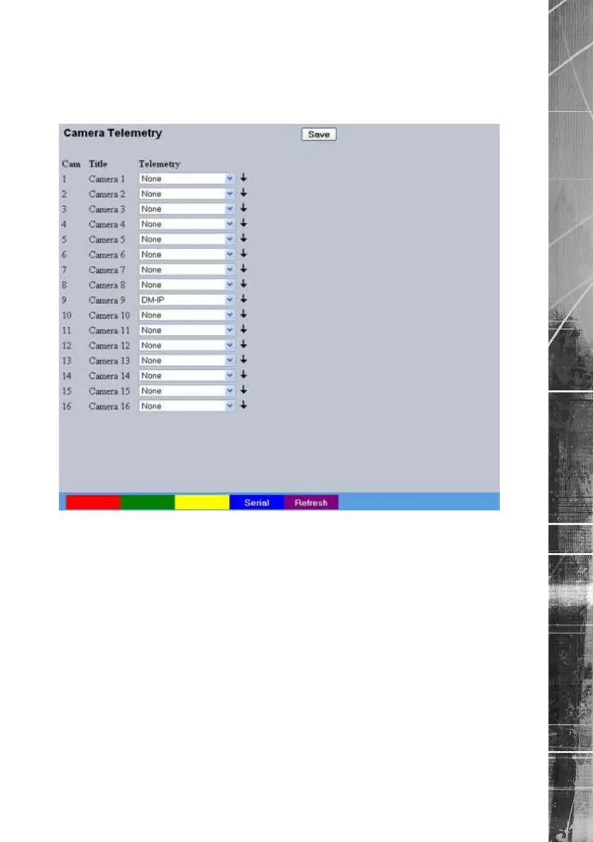 This menu allows conguration of telemetry capable cameras and the assignment of