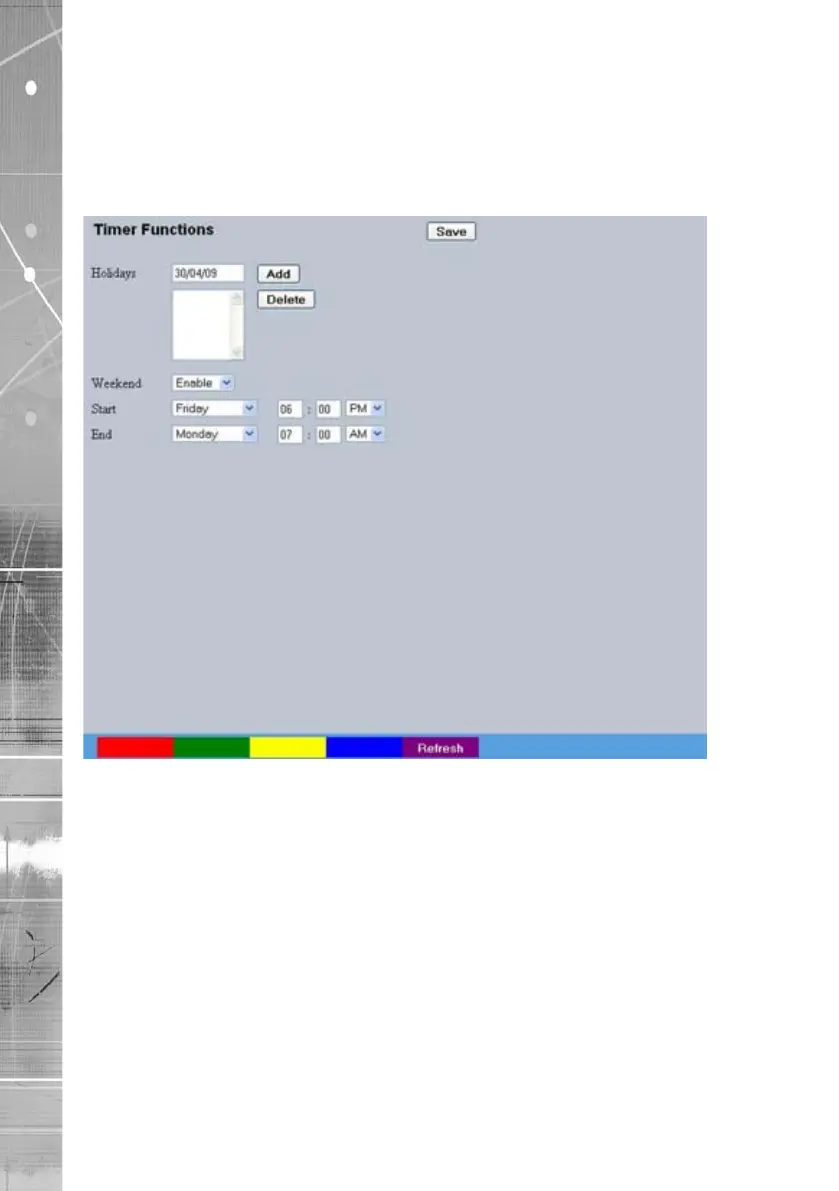 This menu allows the unit to be automatically switched to Override mode for individual days i.e.