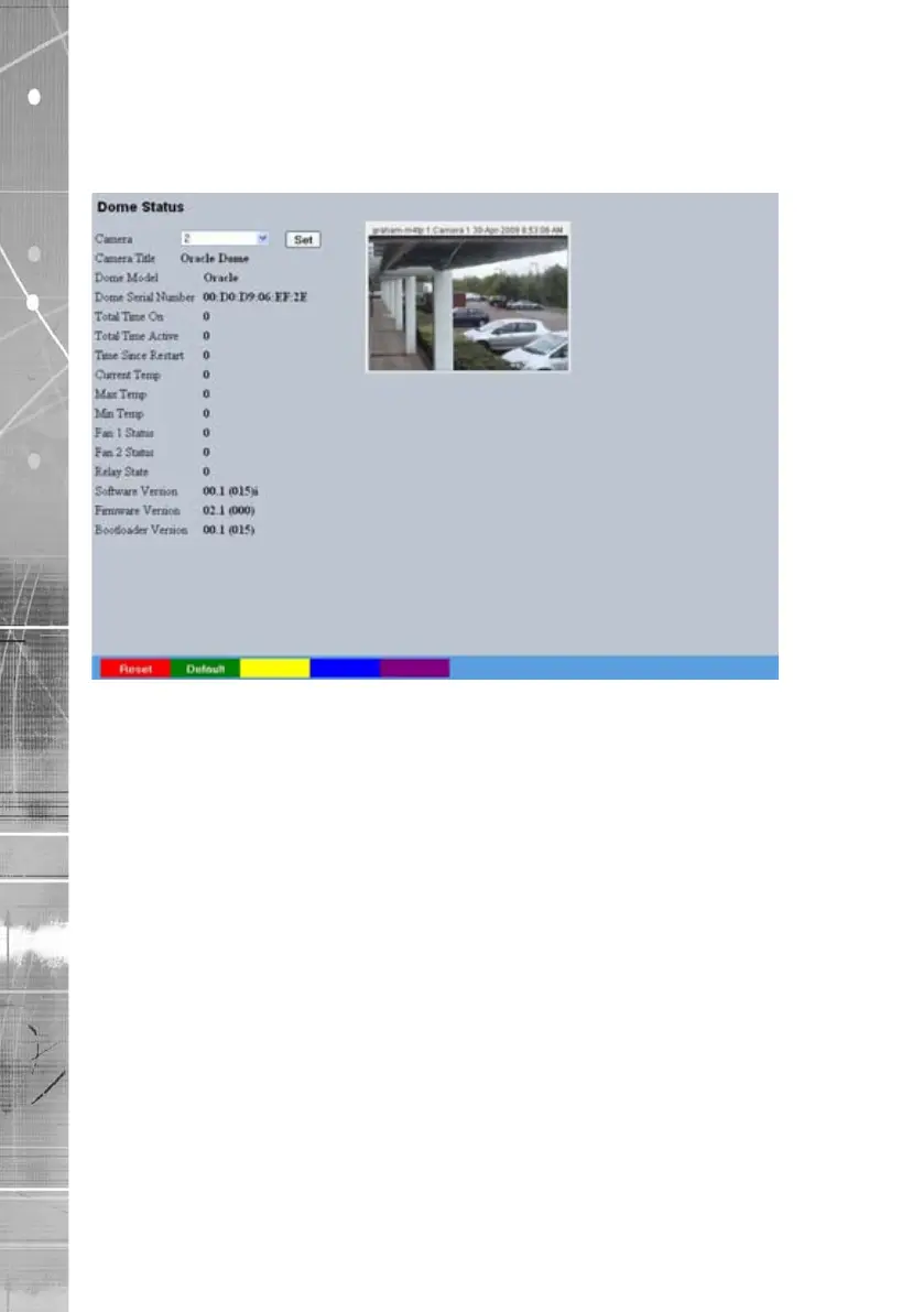 This menu details information regarding the status of the Oracle Dome, notably the model type,