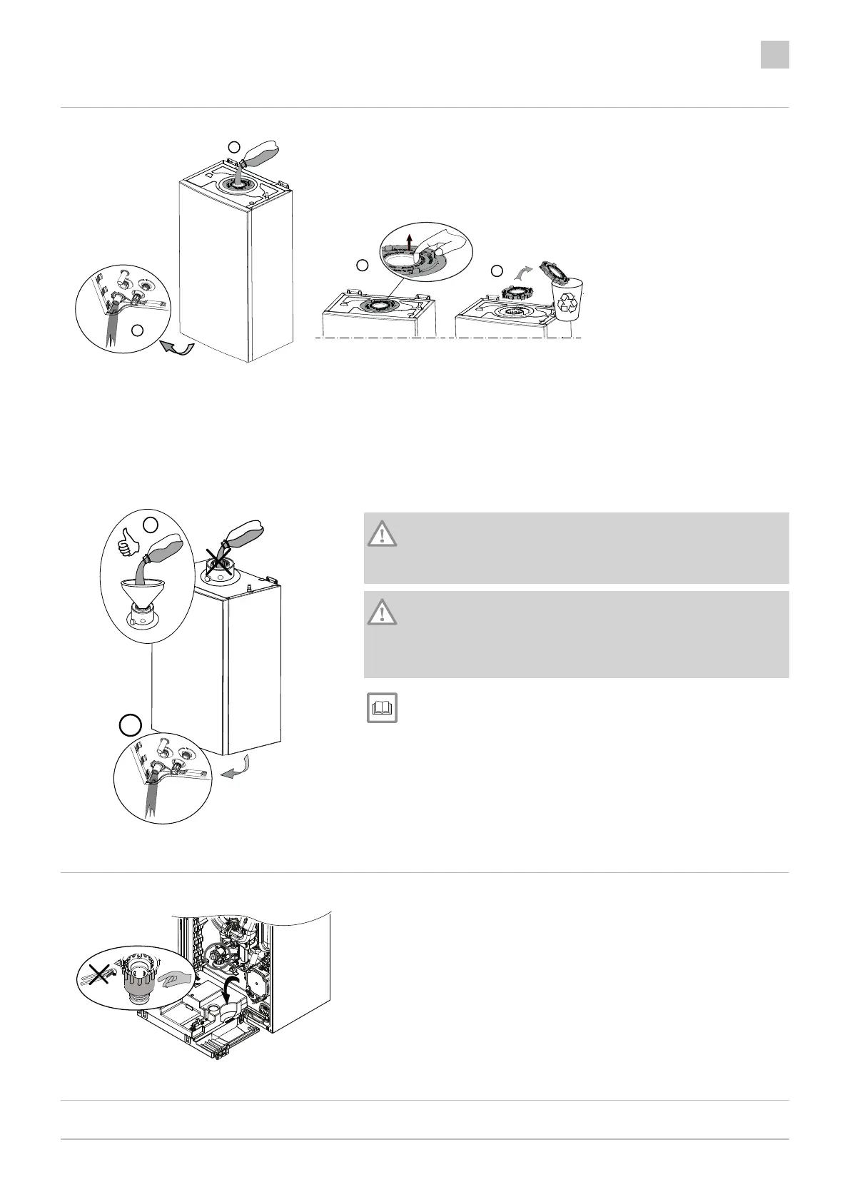 Отворът за монтаж на отработените газове в горната част на котела има пластмасов диск, който поддържа