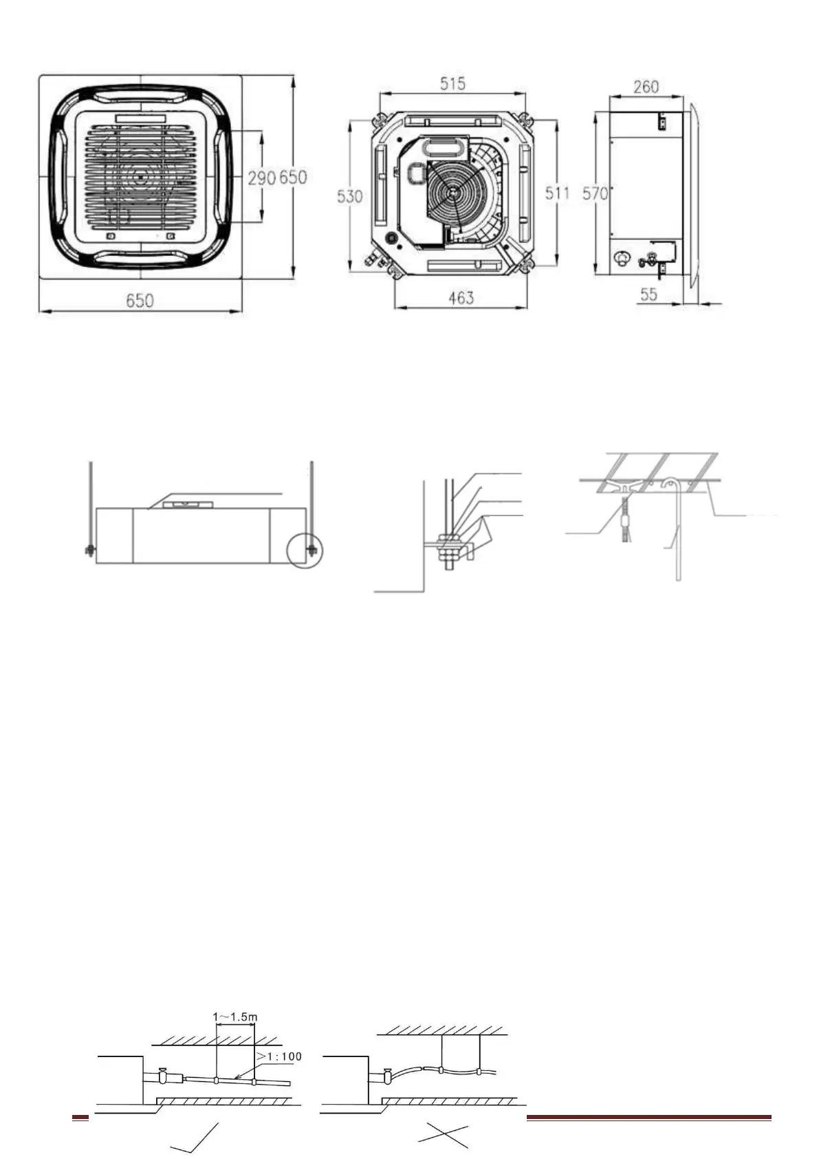 1. The drain pipe must be corrected insulated to prevent the formation of condensation. It must be
