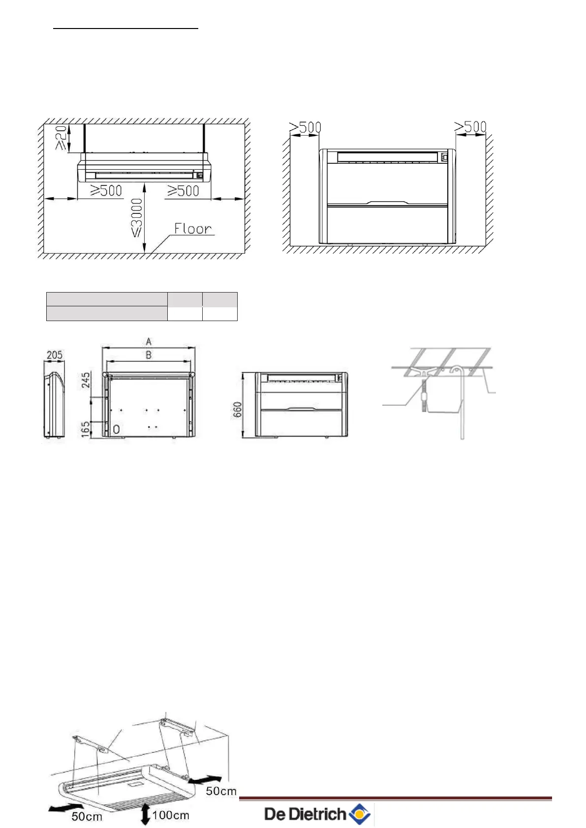 2. The indoor unit must be mounted as detailed below: