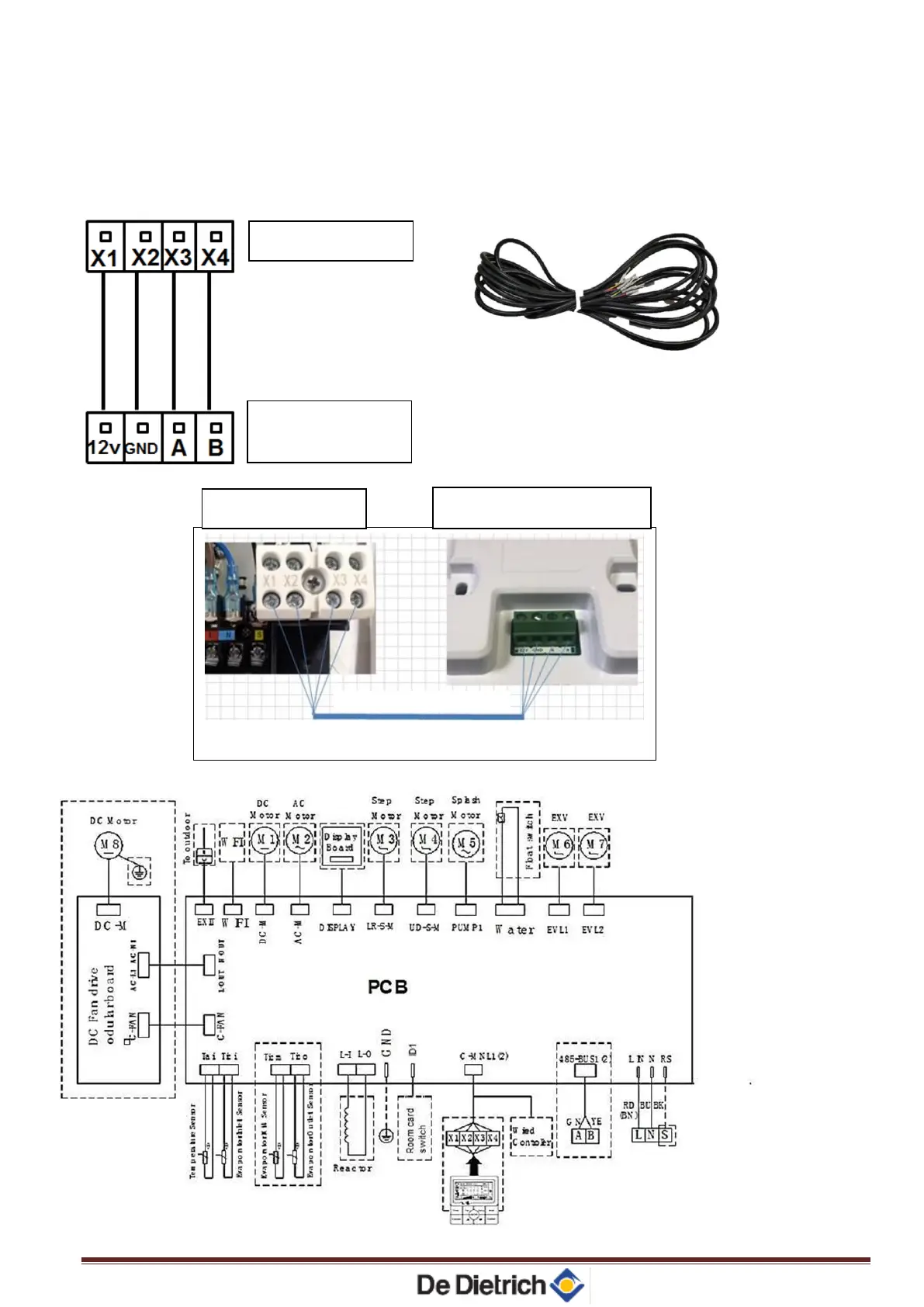 - Connect the wired remote control, using the cable provided, to terminal block X1, X2, X3, X4 on the
