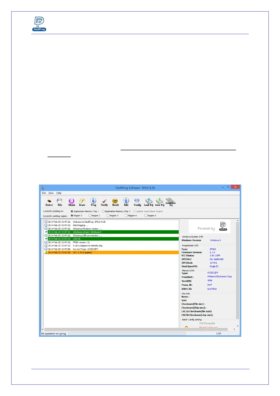 load a file, blank check, program and verify the target Serial Flash. Batch button provides