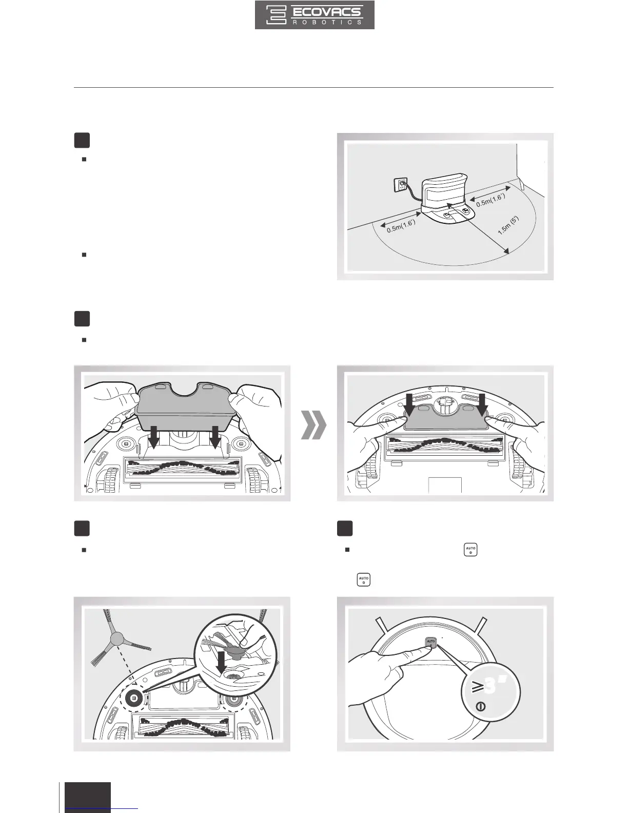 Place the Battery Pack into the battery slot on the bottom of DEEBOT. Press the Battery Pack