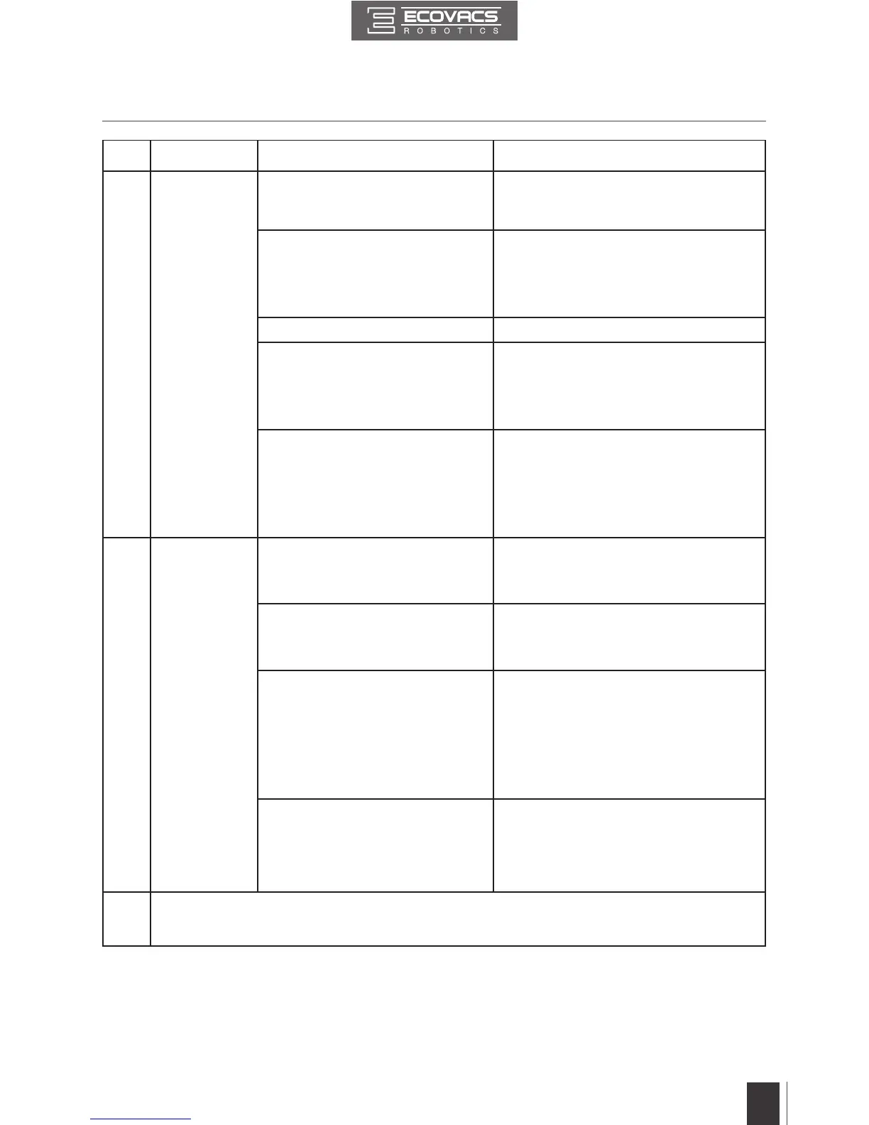 N°. Dysfonction Causes possibles Solutions