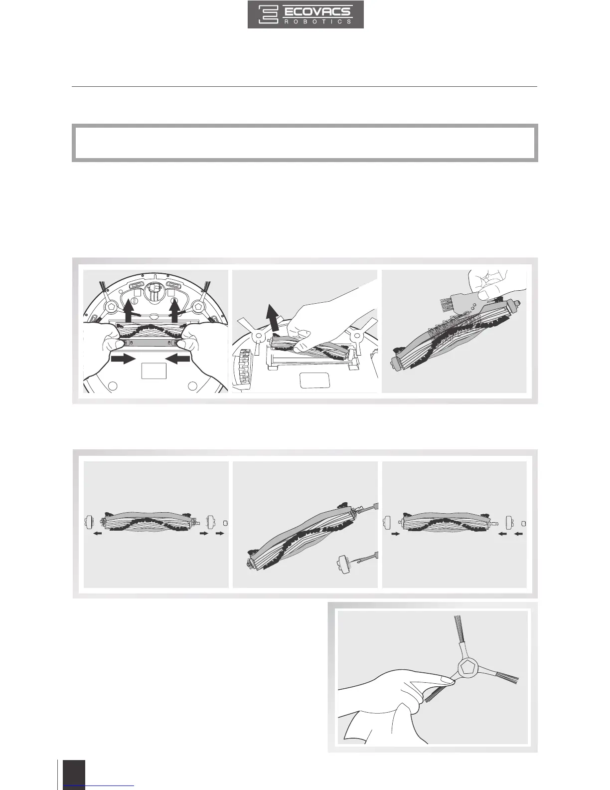 Drehen Sie den Roboter um. Drücken Sie die beiden Tasten unter der Hauptbürste zur Mitte des