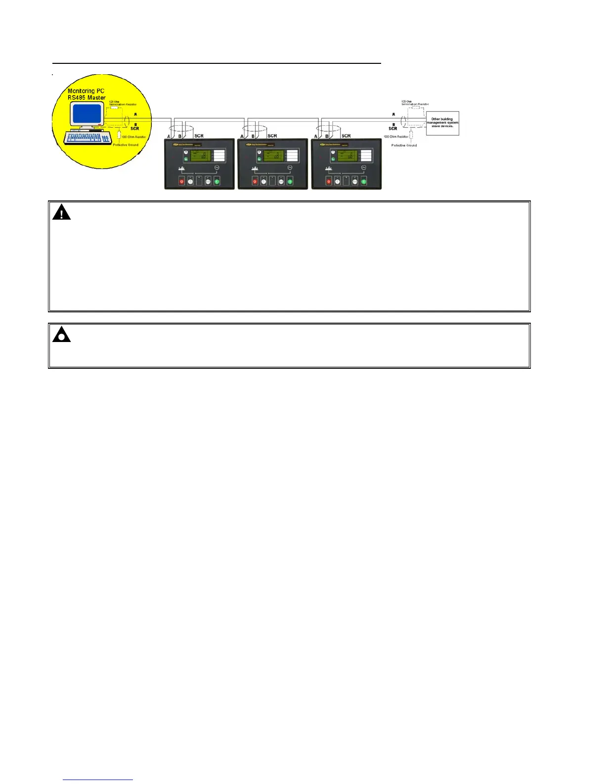 CAUTION! -. RS485 cabling must be 120Ω impedance cable, specified for use with RS485. 120Ω