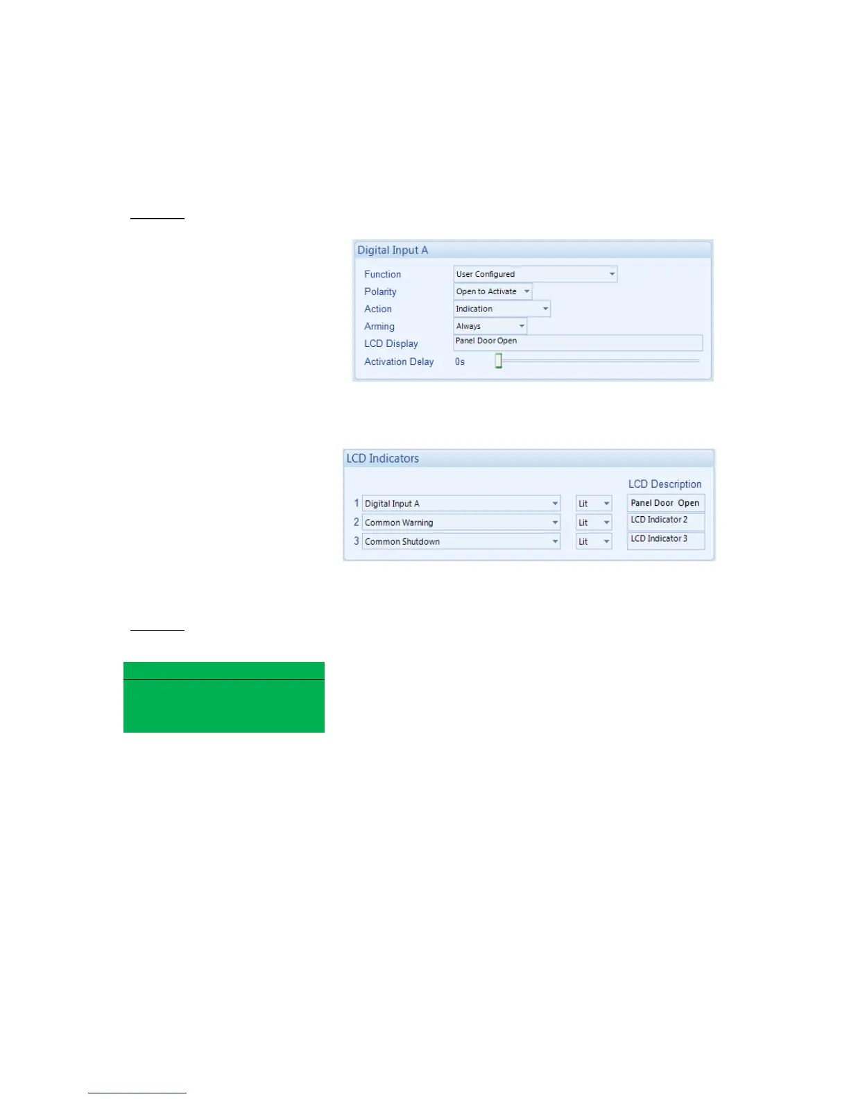 module as a text message in the Status, Event Log or Alarms pages. However, an output or LCD