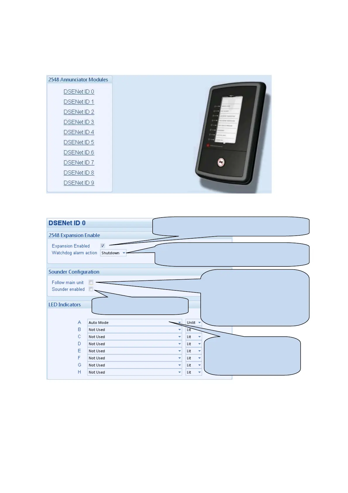 Select the DSENet ID of the LED expansion you wish to configure. The ID of the Annunciator is set by rotary