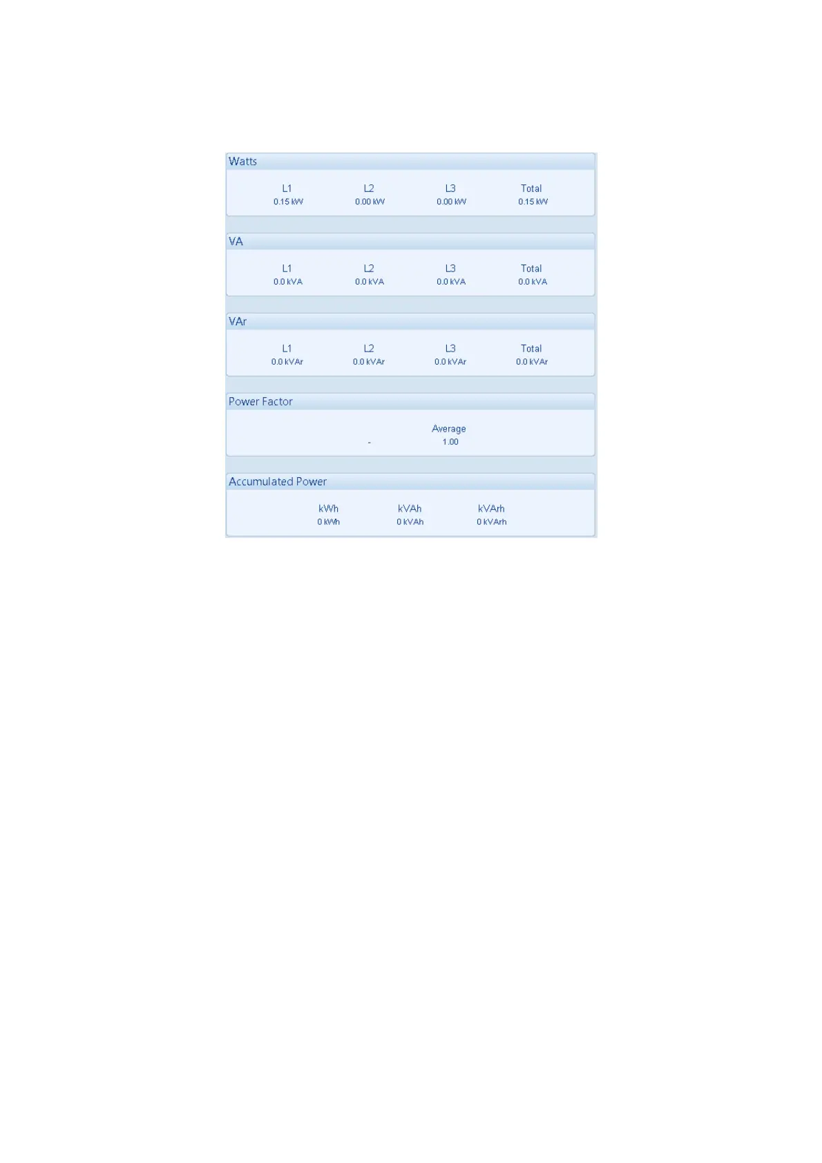 Shows the modules measurements of the supply power.