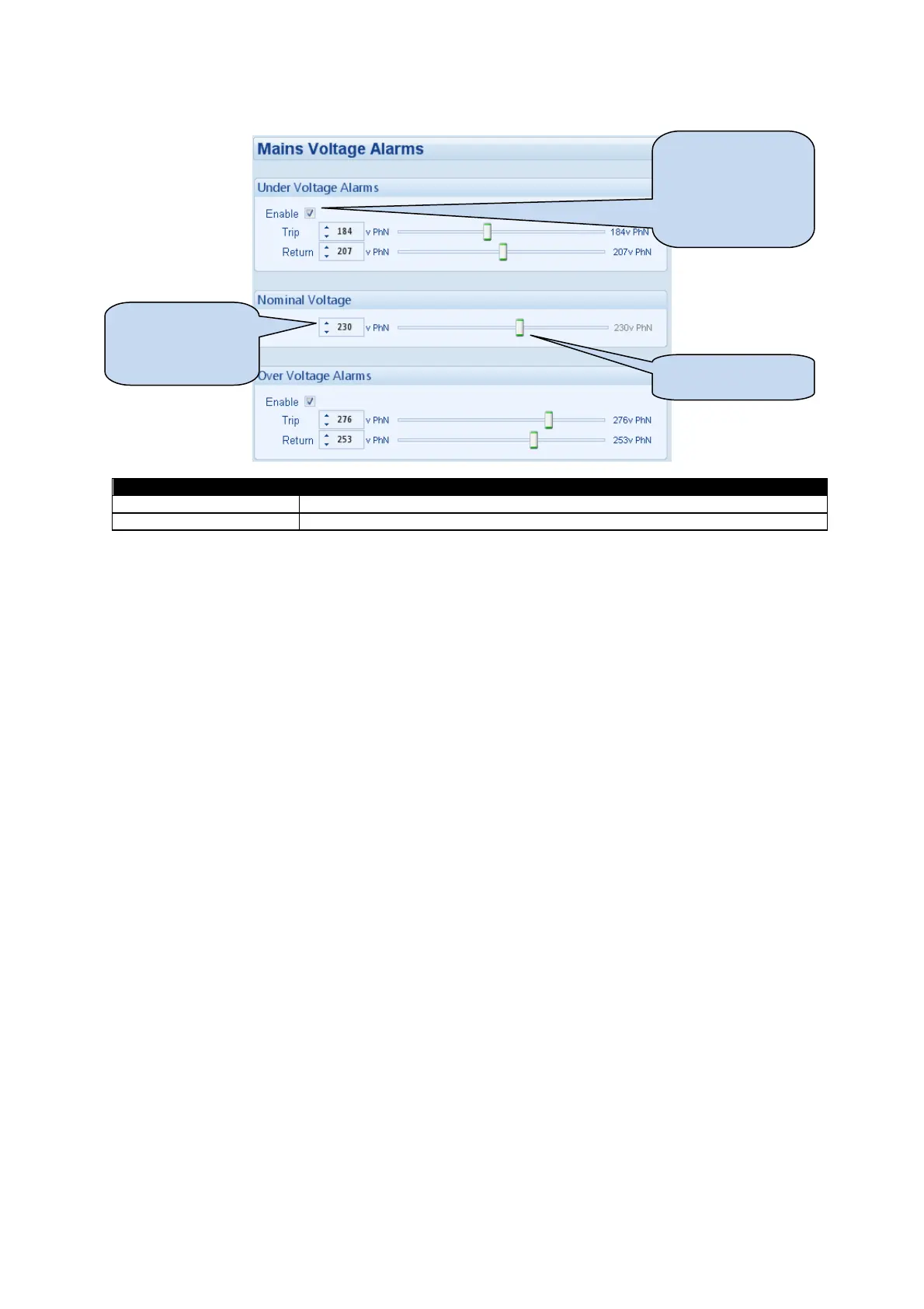 4.8.2 MAINS VOLTAGE ALARMS