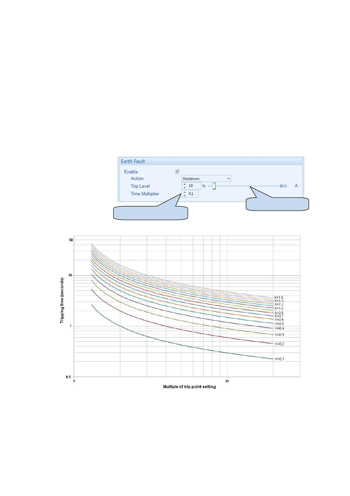 The higher the Earth Fault, the faster the trip. The speed of the trip is dependent upon the fixed formula: