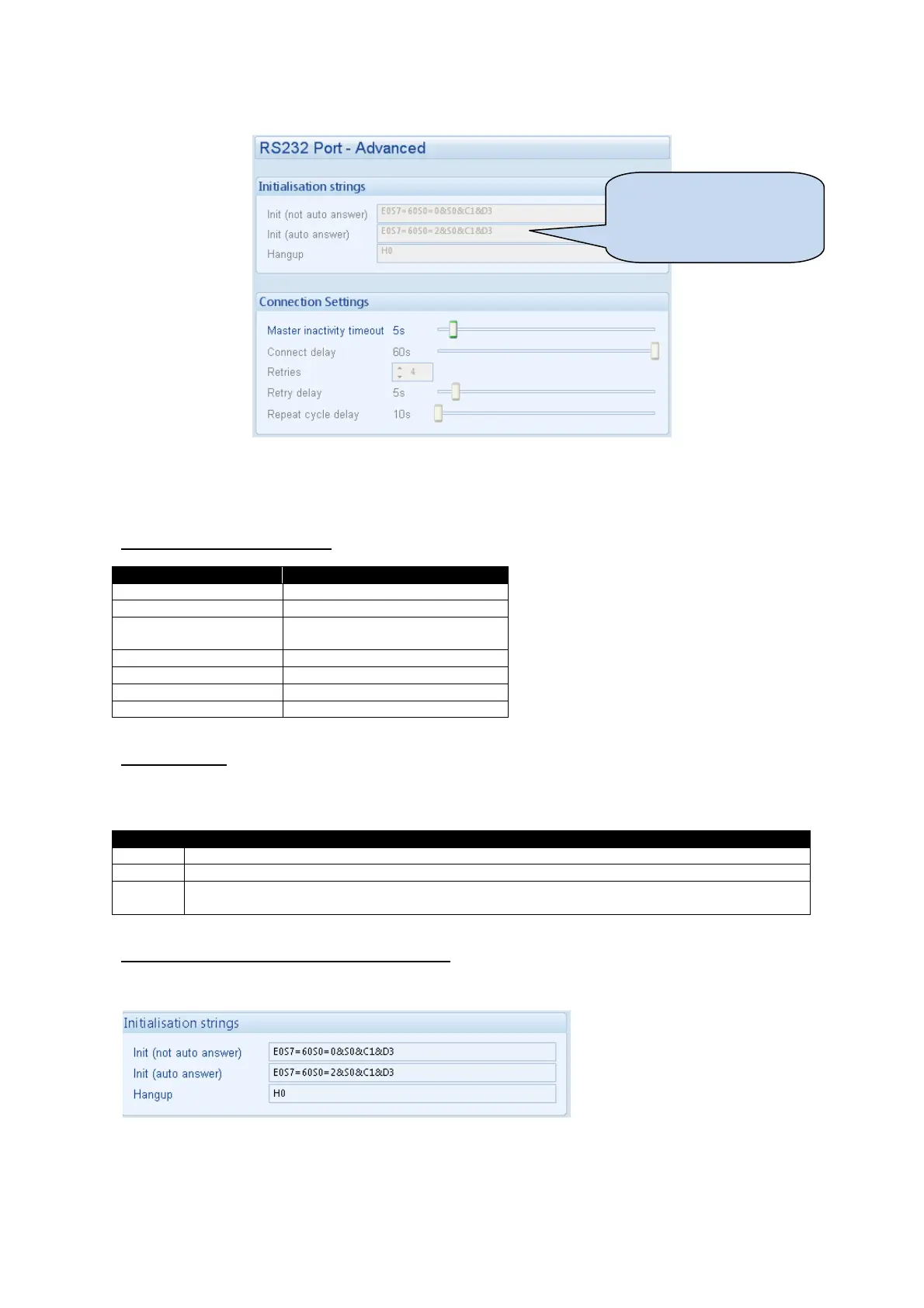 The initialisation strings are commands that are sent to the modem upon powering up the DSE module and
