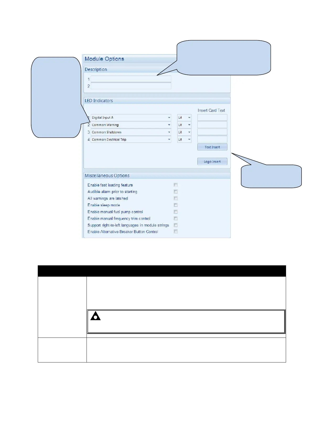 4.2.1 MODULE OPTIONS