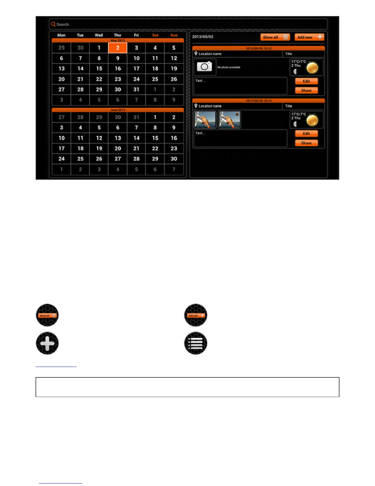 displayedonacalendar.Dayscontainingnoteentriesaredisplayedinorange.Byclicking
