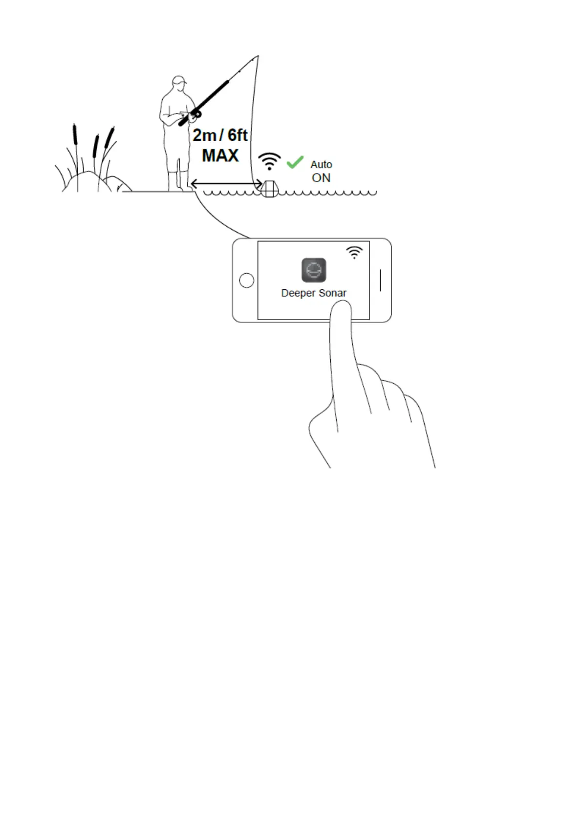 Narrow beam setting of Deeper CHIRP. Wide beams are less accurate when determining fish size or bottom