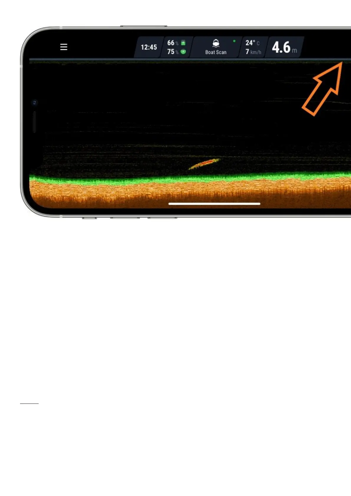 surface of water. No fish or underwater objects will be detected in that area. Deeper sonar will display “too shallow