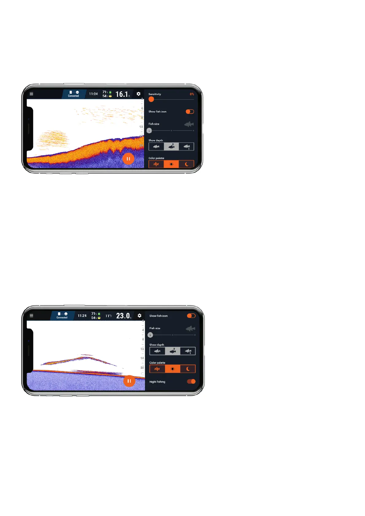not show a lot of sonar returns that could be fish. We recommend starting from 100% sensitivity and then