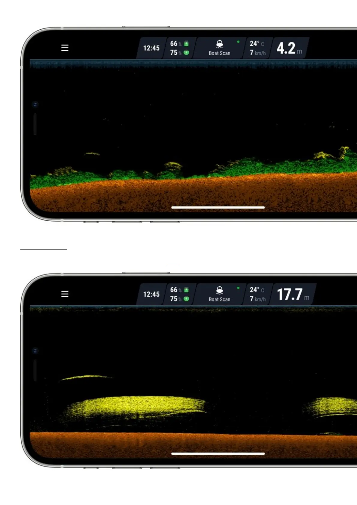 Schools of fish:Deeper sonars will clearly show schools of bait fish, which will be represented as clouds of