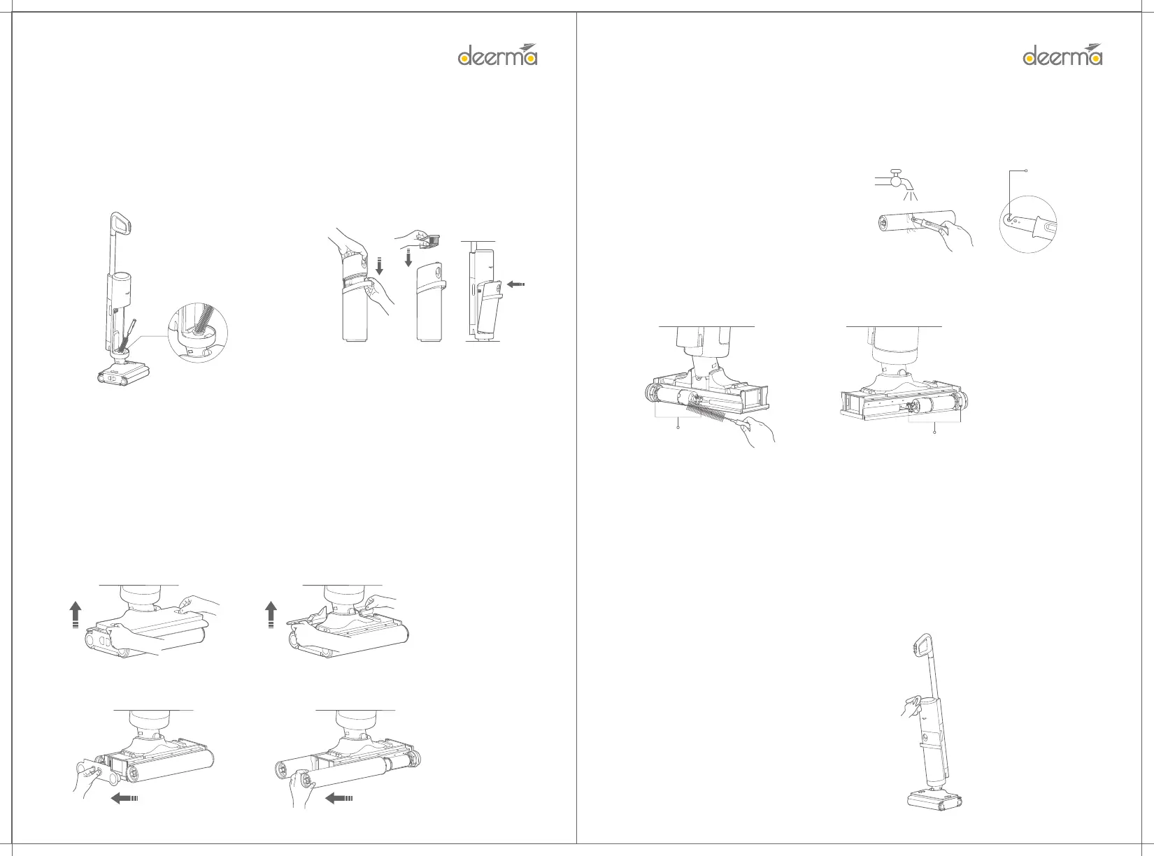 • When cleaning the rolling brush, if main unit needs to be tilted, rst remove the clean water tank and the