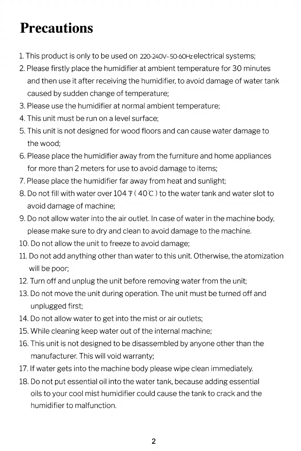 deerma F628 - Precautions; Environmental & Placement Precautions; Water Handling & Additive Precautions; Technical & Warranty Precautions