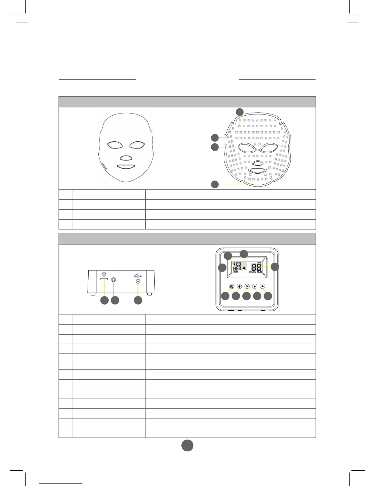 D Power button To turn the mask ON and OFF or to PAUSE treatment